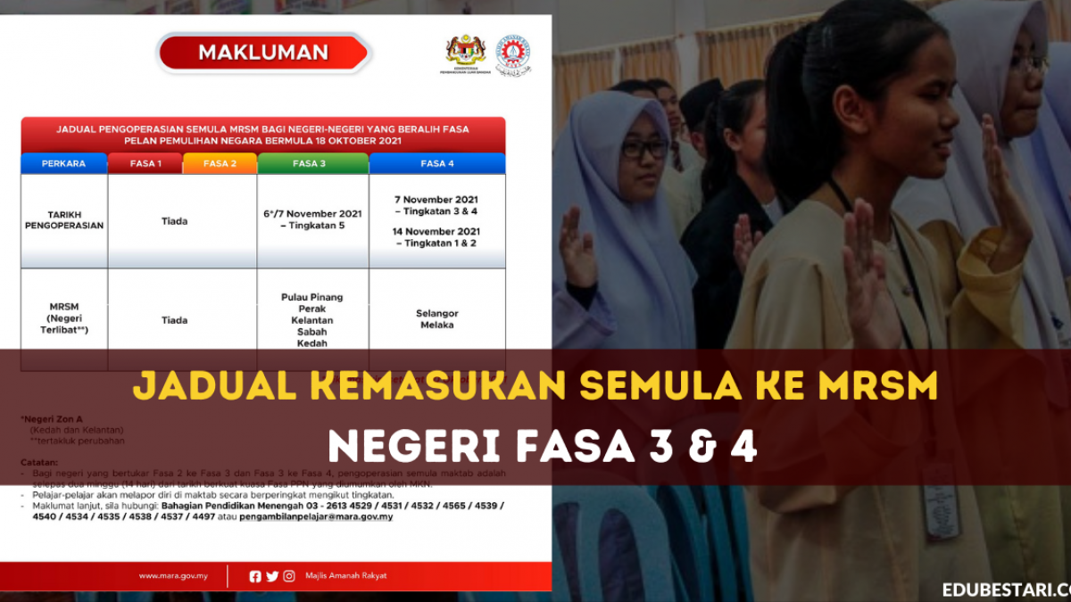 Terkini Jadual Kemasukan Semula Ke Mrsm Negeri Fasa 3 4 Edu Bestari